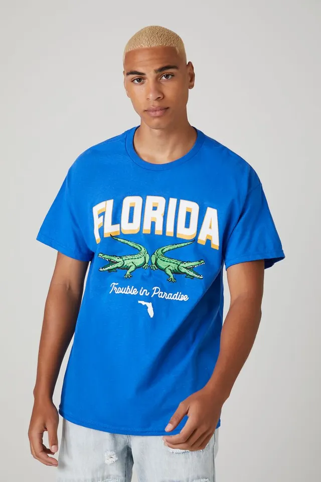 Men Florida Trouble in Paradise Graphic Tee in Blue, XXL
