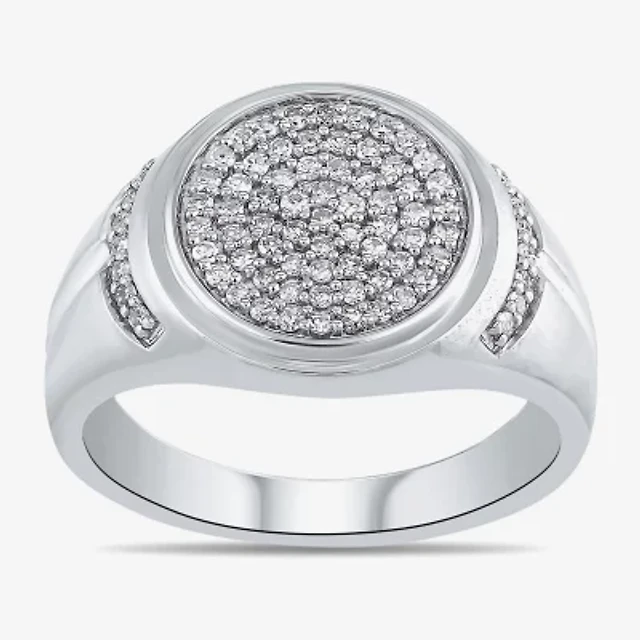 Mens 1/2 CT. T.W. Lab Grown White Diamond Sterling Silver Oval Cluster Fashion Ring