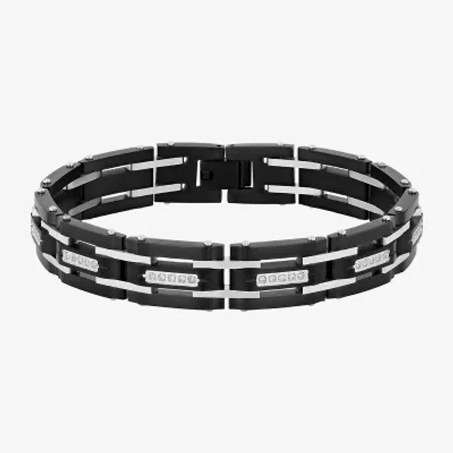 Mens 1/8 CT. T.W. Diamond Stainless Steel & Resin Link Bracelet