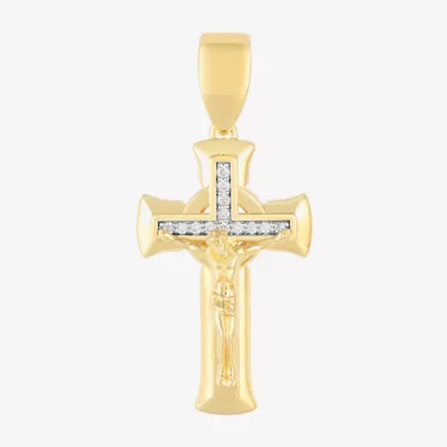 Mens 1 1/8 CT. T.W. Natural White Diamond 10K Gold Cross Pendant
