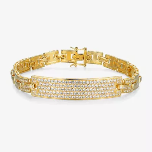 Mens 18K Gold Over Silver 8 1/2 Inch Solid Link Id Bracelet