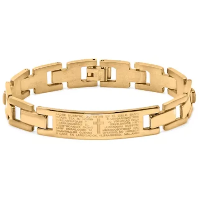 Mens 18K Gold Plated Stainless Steel Spanish Lord's Prayer Link Bracelet