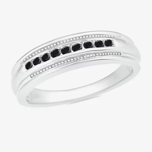 Mens 3MM 1/4 CT. T.W. Natural Black Diamond 10K White Gold Wedding Band