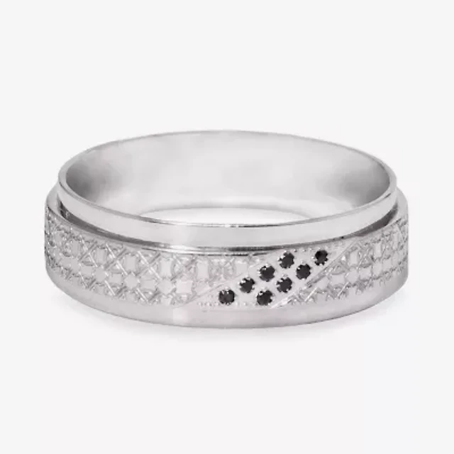 Mens 10MM Diamond Accent Natural Black Diamond Stainless Steel Cross Wedding Band