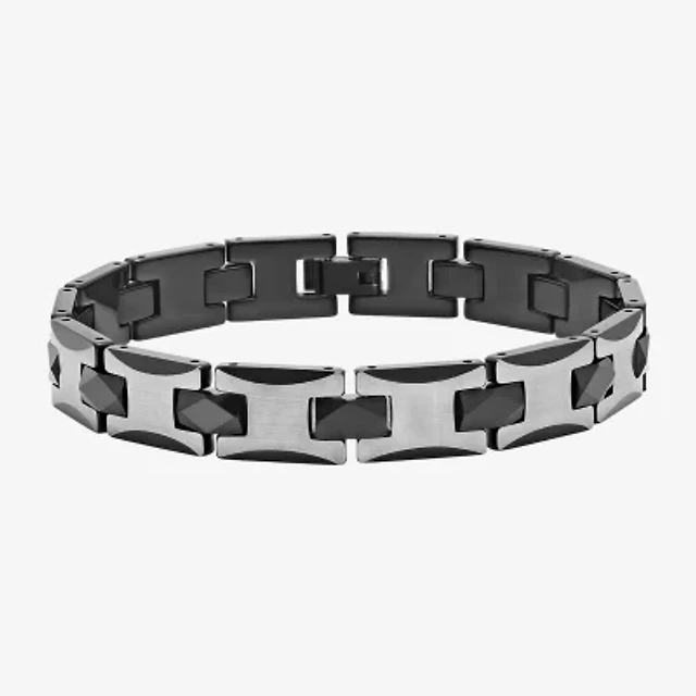 Mens 8 1/2 Inch Stainless Steel & Black Tungsten Link Bracelet