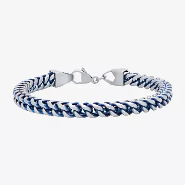 Mens 8.5 Inch Stainless Steel Blue IP Finish Chain Bracelet