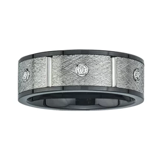 Mens 8mm 1/5 CT.T.W. Natural Diamond Stainless Steel & Ceramic Wedding Band