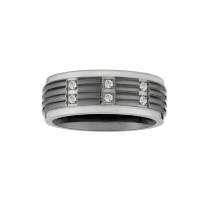 Mens 8MM 1/8 CT. T.W. Natural White Diamond Titanium Wedding Band