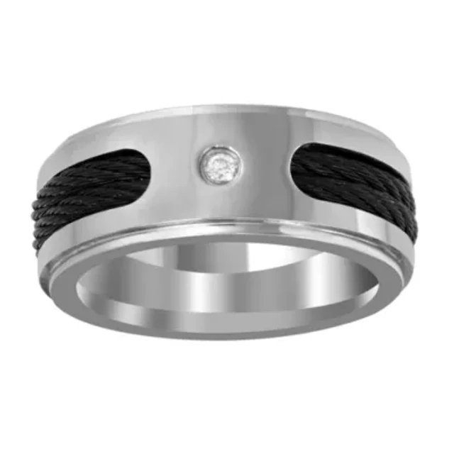 Mens 8MM Diamond Accent Natural White Diamond Titanium Wedding Band