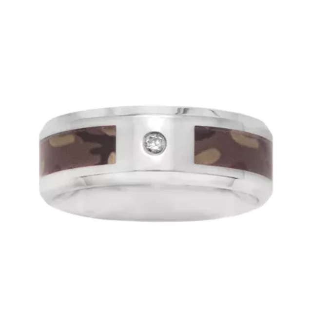 Mens 8mm Stainless Steel Diamond-Accent Camouflage Wedding Band