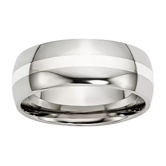 Mens 8mm Stainless Steel & Sterling Silver Inlay Wedding Band