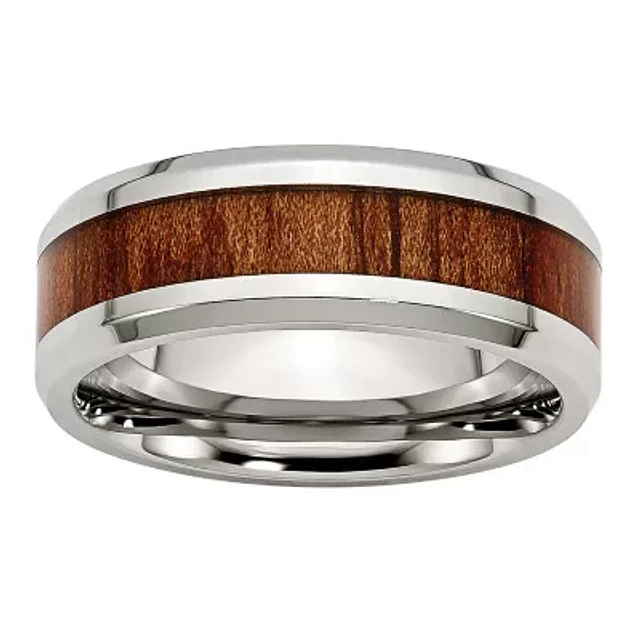 Mens 8mm Stainless Steel Wood Inlay Wedding Band