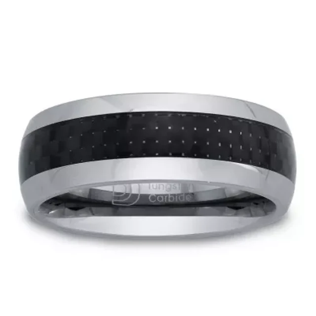 Mens 8mm Tungsten Carbide & Carbon Fiber Wedding Band