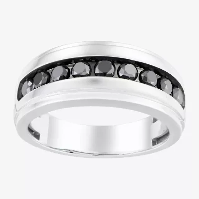 Mens 9M 1 CT. T.W. Natural Black Diamond 10K White Gold Wedding Band