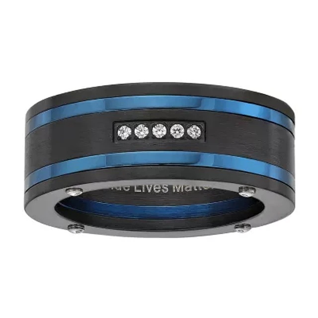 Mens 9M Cubic Zirconia Stainless Steel Round Band