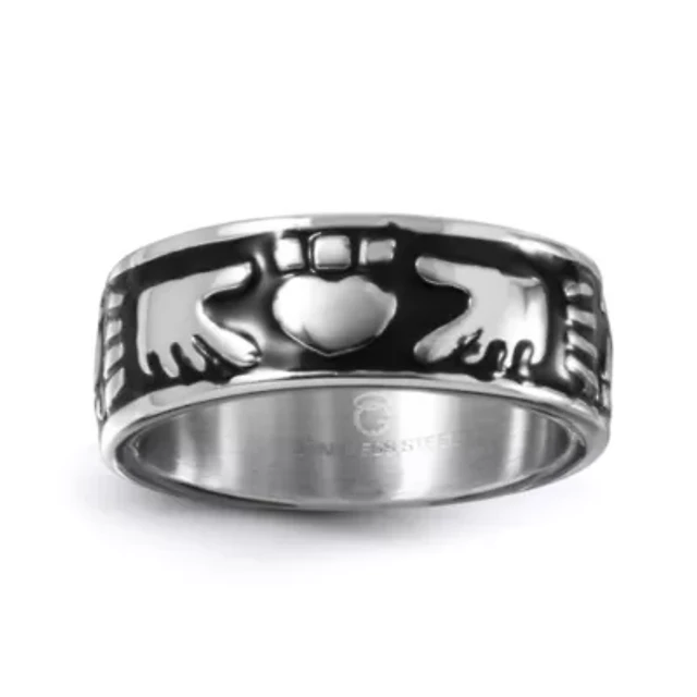 Mens 9M Stainless Steel Claddagh Wedding Band