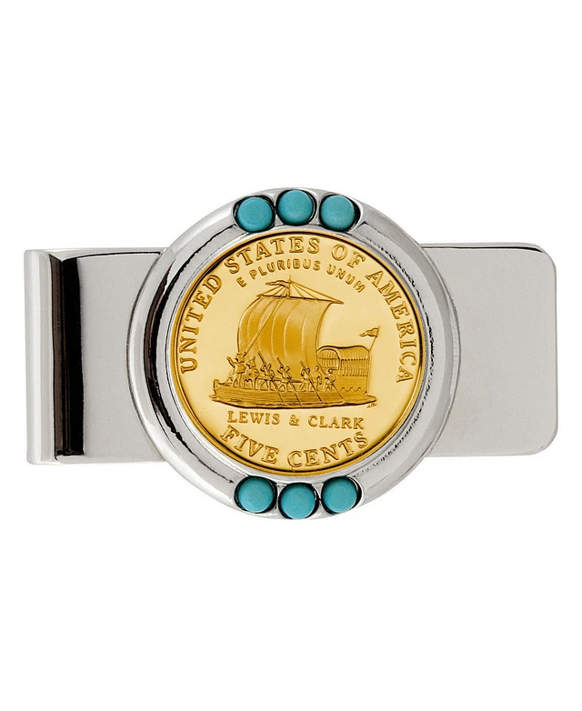 Men's American Coin Treasures Gold-Layered Westward Journey Keelboat Nickel Turquoise Coin Money Clip