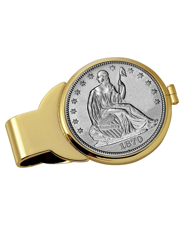 Men's American Coin Treasures Gold-Layered Silver Barber Half Dollar Stainless Steel Coin Money Clip