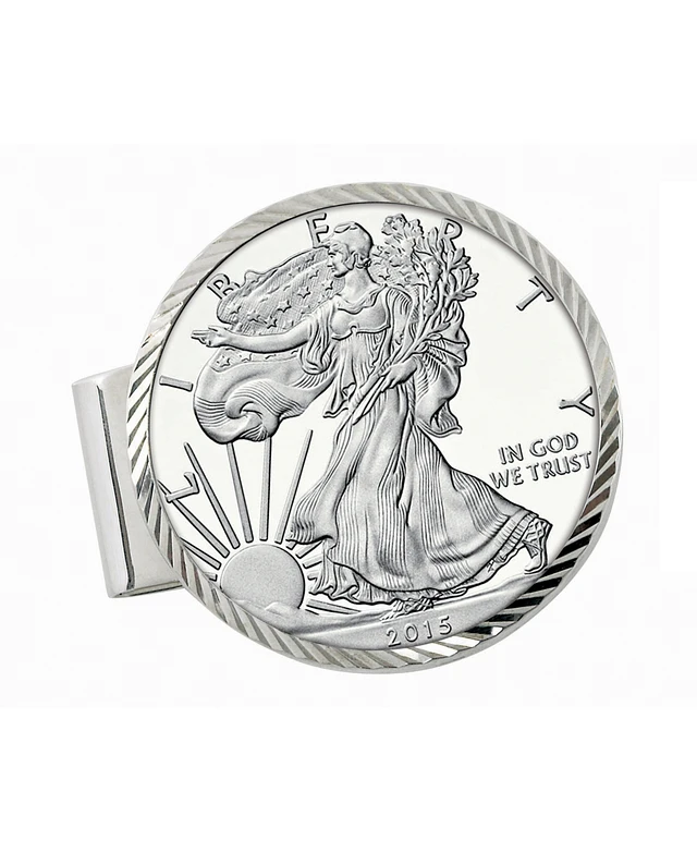 Men's American Coin Treasures Sterling Silver Diamond Cut Coin Money Clip with Proof American Silver Eagle Dollar