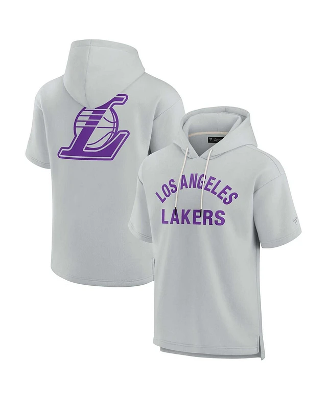 Men's and Women's Fanatics Signature Gray Los Angeles Lakers Super Soft Fleece Short Sleeve Pullover Hoodie
