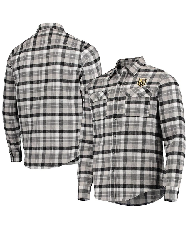 Men's Antigua Black and Gray Vegas Golden Knights Ease Plaid Button-Up Long Sleeve Shirt