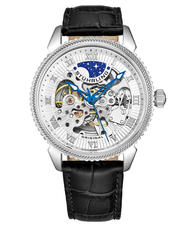 Stuhrling Men's Automatic Watch Alligator Embossed Genuine Leather Strap with Decorative Stitching