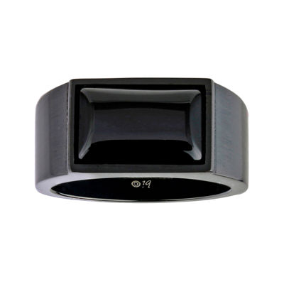 Mens Black Agate Stainless Steel Band Ring in Ponce, PR