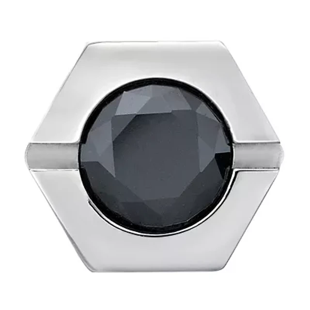 Mens Black and White Cubic Zirconia Stainless Steel Stud Earring