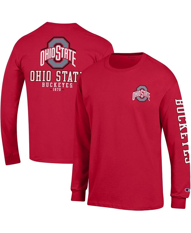 Men's Champion Scarlet Ohio State Buckeyes Team Stack 3-Hit Long Sleeve T-shirt