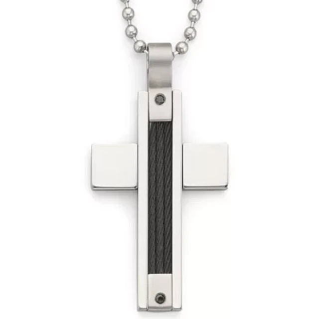 Steeltime Men's Two-Tone Stainless Steel Simulated Black Diamond Cross 24" Pendant Necklace