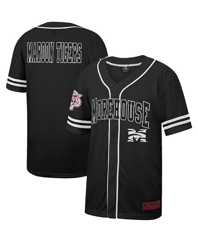 Men's Colosseum Black Morehouse Maroon Tigers Free Spirited Mesh Button-Up Baseball Jersey