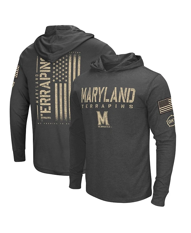 Men's Colosseum Charcoal Distressed Maryland Terrapins Team Oht Military-Inspired Appreciation Hoodie Long Sleeve T-shirt