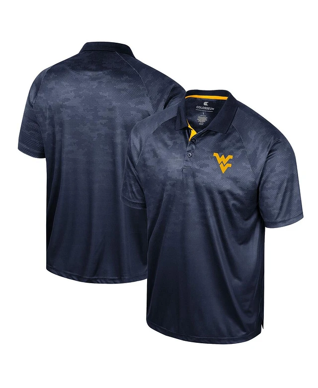 Men's Colosseum Navy West Virginia Mountaineers Honeycomb Raglan Polo Shirt
