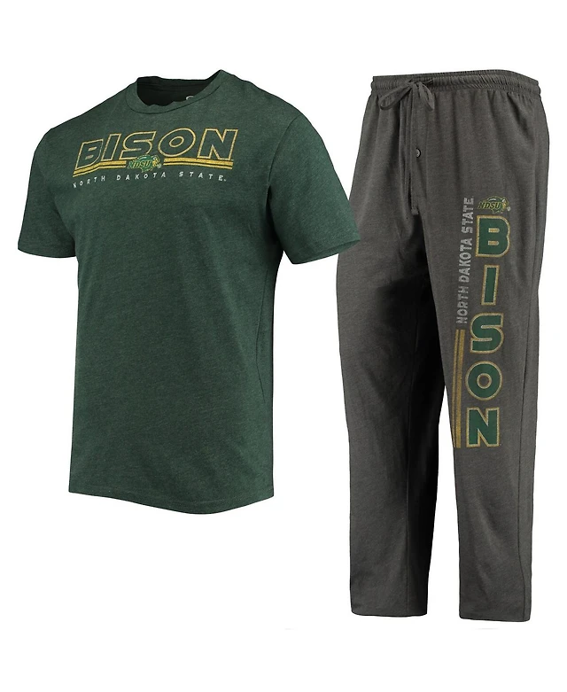 Men's Concepts Sport Heathered Charcoal, Green Ndsu Bison Meter T-shirt and Pants Sleep Set