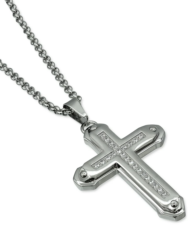 Men's Cubic Zirconia Cross 24" Pendant Necklace in Stainless Steel