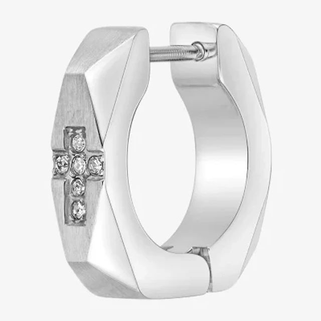 Mens Cubic Zirconia Stainless Steel 14mm Hoop Earrings