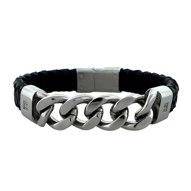 Mens Stainless Steel & Leather Bracelet