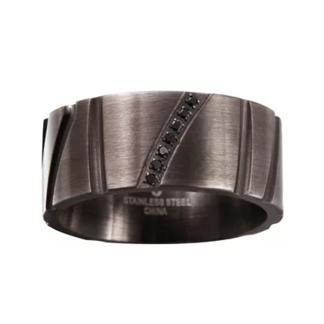 Mens 10MM Diamond Accent Natural Black Diamond Stainless Steel Cross Wedding Band