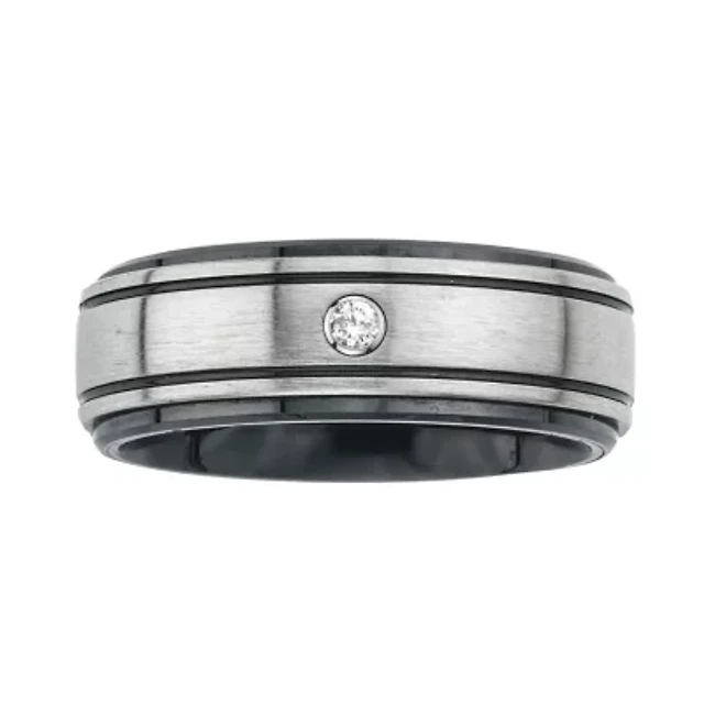 Mens 8MM Diamond Accent Natural Diamond Stainless Steel Wedding Band
