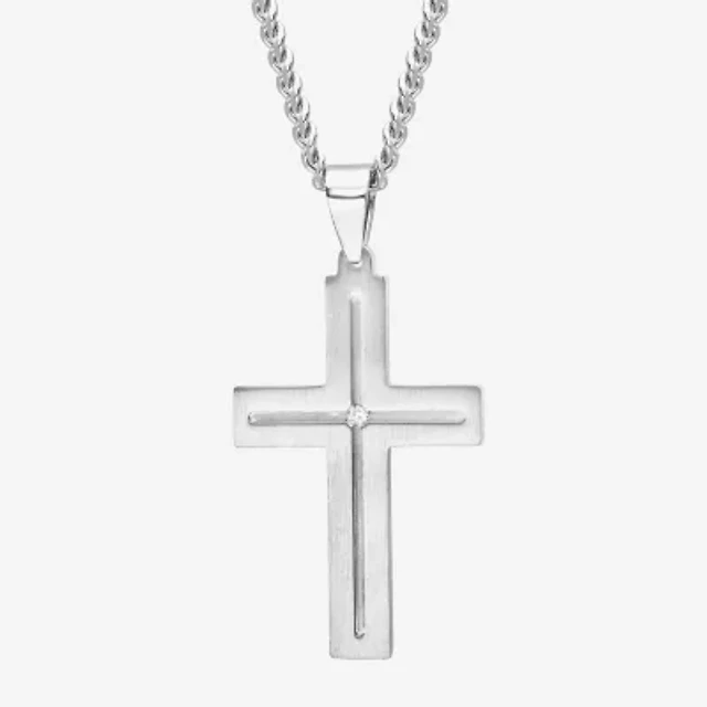 Mens Diamond-Accent Stainless Steel Cross Pendant Necklace