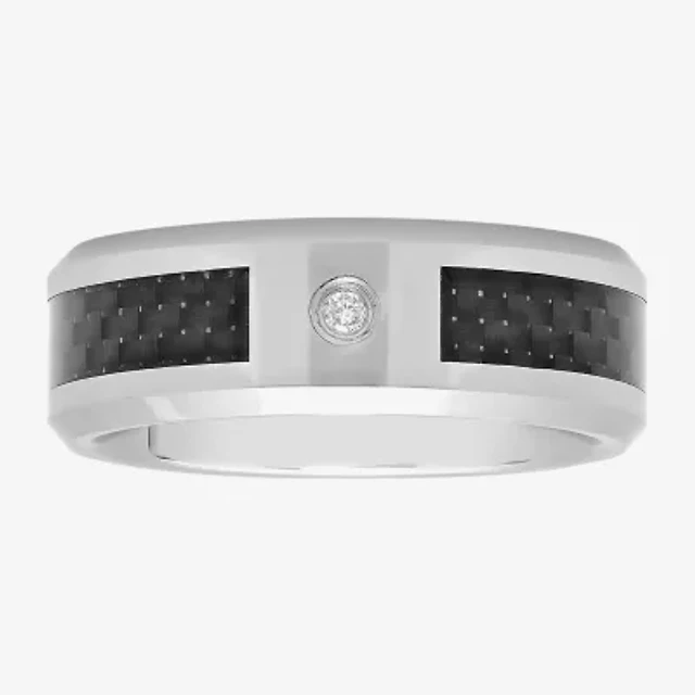 Mens Diamond-Accent Stainless Steel & Ceramic Wedding Band