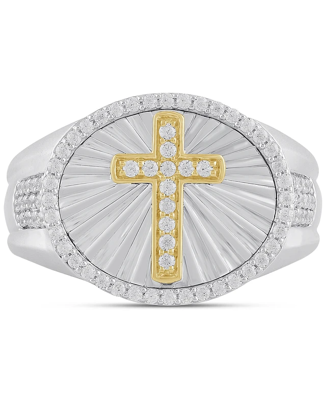 Men's Diamond Cross Oval Ring (1/2 ct. t.w.) in Sterling Silver & 18k Yellow Gold-Plated Sterling Silver