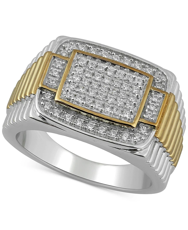 Men's Diamond Pave Cluster Ring (1 ct. t.w.) in Sterling Silver & 14k Gold-Plate