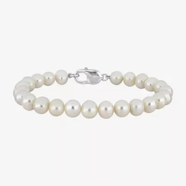 Mens Dyed White Cultured Freshwater Pearl Sterling Silver Strand Bracelet