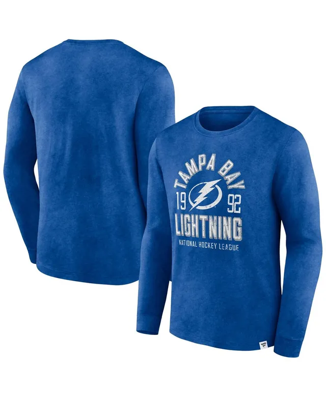 Men's Fanatics Heather Blue Distressed Tampa Bay Lightning Keep The Zone Long Sleeve T-shirt