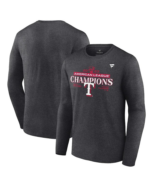 Men's Fanatics Heather Charcoal Texas Rangers 2023 American League Champions Locker Room Long Sleeve T-shirt