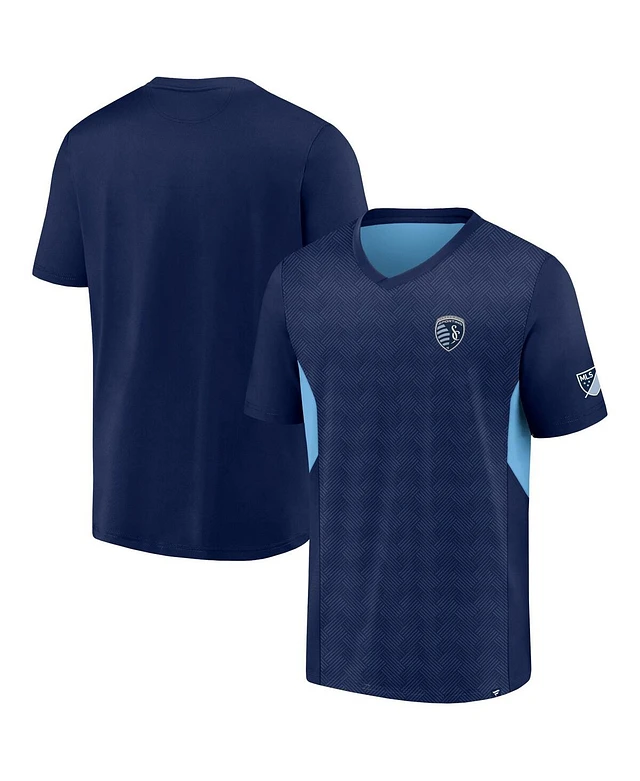 Men's Fanatics Navy Sporting Kansas City Extended Play V-Neck T-shirt