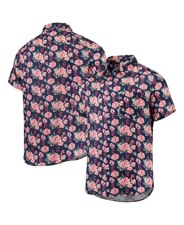Men's Foco Navy Cleveland Guardians Floral Linen Button-Up Shirt