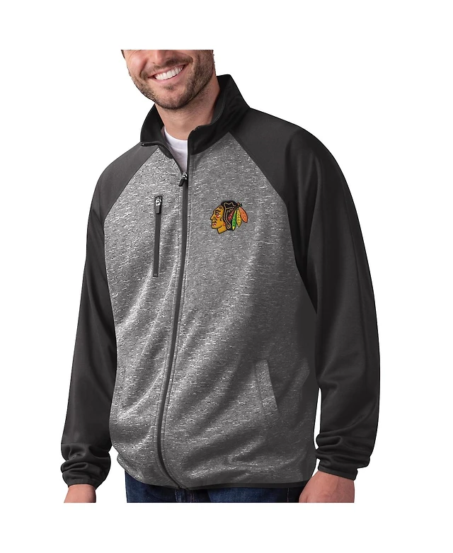 Men's G-iii Sports by Carl Banks Black Chicago Blackhawks Runners Raglan Full-Zip Track Jacket