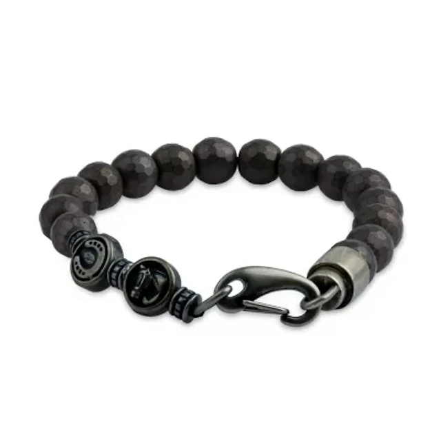 Mens Genuine Brown Hematite Stainless Steel Beaded Bracelet